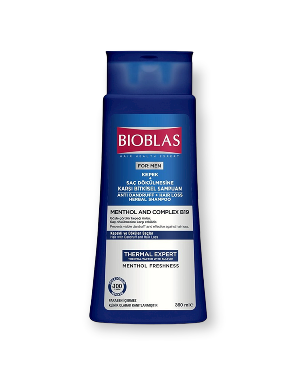 شامپو تخصصی مردانه بیوبلاس ضد ریزش ضد شوره مدل Thermal Expert حجم 360 میل ساخت شرکت بيوبلاس ترکیه