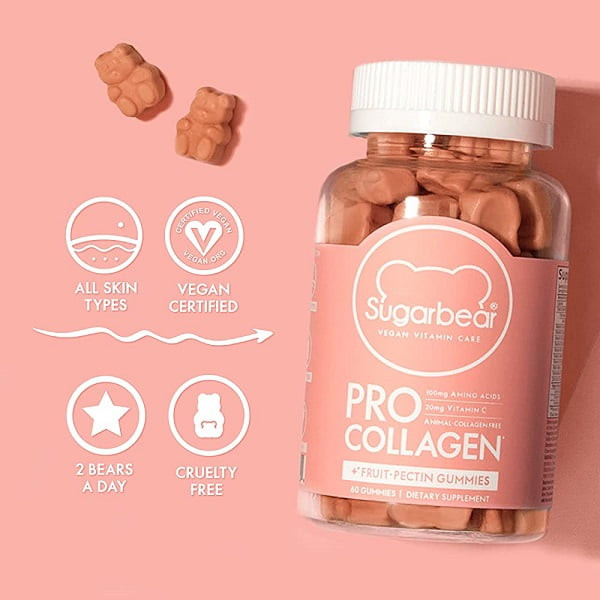 پرو كلاژن پاستیلی شوگربیر برای کسانی ایده آل است که به دنبال ویتامین گیاهی هستند که پوست شان را تقویت کند. تصور کنید که یک پاستیل نرم، جویدنی و خوشمزه را در دهان دارید. با Sugarbear Pro Collagen کلاژن سازی طبیعی بدن خود را تقویت کنید. این فرمول علمی عاری از کلاژن حیوانی و مملو از هزاران ویتامین است. این مکمل با مواد مغذی موثری مانند بیوتین، متیل فولات، روی، ويتامين C و همچنین اسیدهای آمینه قدرتمند گلیسین، اسید گلوتامیک، گلوتاتیون فوق آنتی اکسیدان و غیره است.