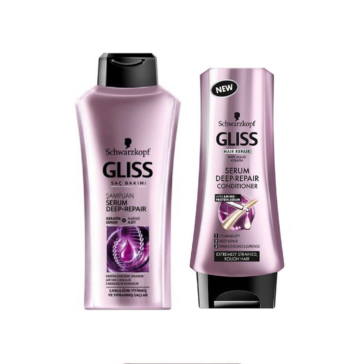 پکیج اقتصادی حاوی یک عدد شامپو مو احیا کننده قوی گلیس Gliss و یک عدد نرم کننده و بازسازی کننده گلیس Gliss می باشد.