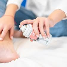 - اسپری را به مسافت مناسبی از پوست پاها اسپری کنید.